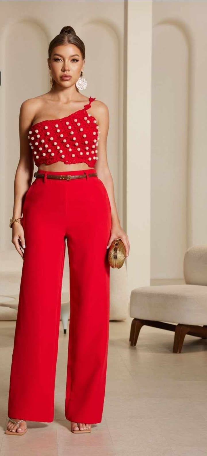 • 2 Piece Set (One Shoulder Top and Wide Pants)